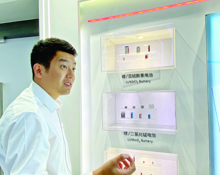 △亿纬锂能锂原电池产品线总裁王彦斌介绍获奖的锂锰原电池(组)产品。
